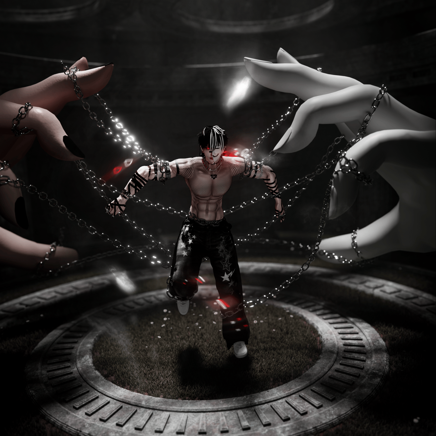 Color Swaps: Skintone Slider/Eyebrows White/Face Scar/Main Hair Swap/Second Hair Swap/R Eye Swap/L Eye Swap/Eye Hue/Eye Saturation/Eye Black/Right Star Eye/Left Star Eye/R Eyelash White/L Eyelash White/White Headcap/Hats Slider/White ACCs/Tattoos/Tattoo Emission/Gold/Shirt Slider/Hoodie Slider/Vest White/Turtleneck White/Tank Black/Onesie Slider/Fishnet Slider/Belt White/Pants Slider/Shoe Slider